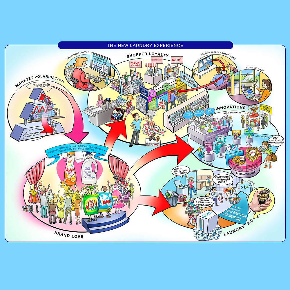 During workshops and brainstorm sessions – whether at small venues or large events – my live drawings bring ideas to life as they unfold. Created digitally or hand-drawn, these real-time visuals enhance discussions, clarify concepts and spark creativity.